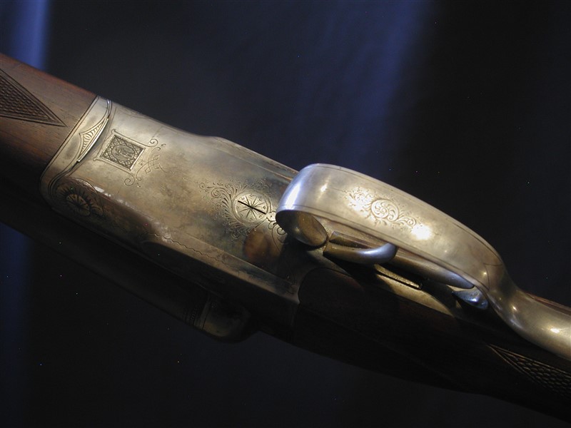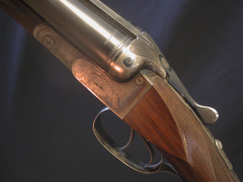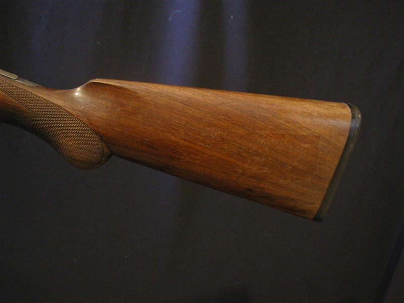 JP SAUER, SUHL, BLNE, 2 1/2", 30" filed matte concave game rib, choked IC/Mod. 14 5/8" lightly figured wood to thin black recoil pad. Strong original case colors remain on this gun that has been shot very little. 6lbs 15oz. |