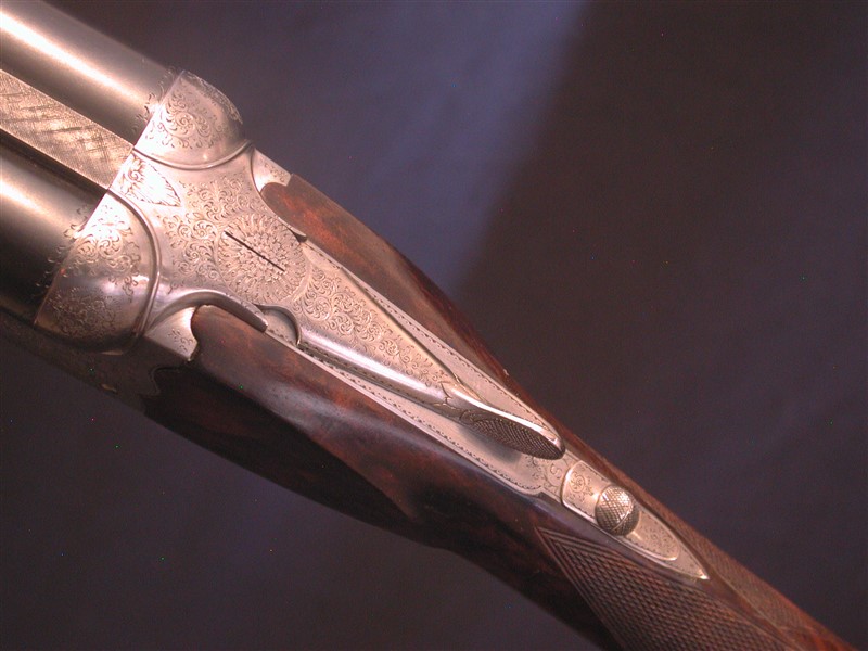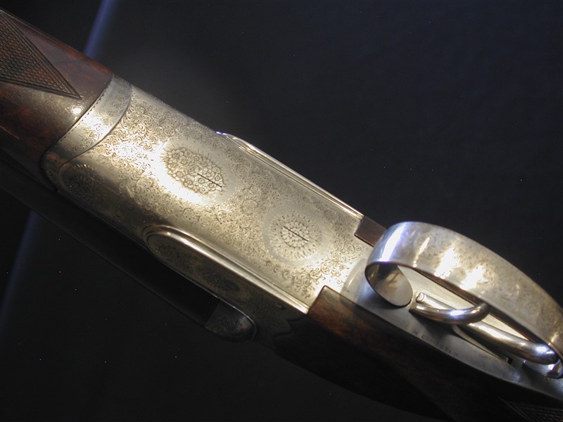 PIOTTI, ITALY, 28 bore, BSEE, c.2000, 2 3/4", 28" choked IC/Mod. 14 1/2", diamond grip highly figured wood to horn butt plate. Elegant scroll back, coin finished receiver with fine English rose and scroll engraved by Granetti. 5lbs 12oz. A fine little 28 bore in excellent condition. |